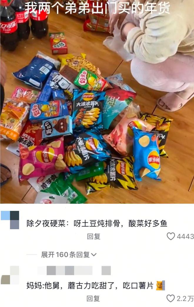 新晋网红零食也成为了00 后年货清单上的亮点。干噎酸奶,成了应对 “烦人亲戚” 的秘密武器,巧妙化解尴尬的社交场景★;芥末味夏威夷果等怪味零食★,为家人带来新奇的尝鲜体验;还有年轻人带着巨型零食,在回家路上成为 “显眼包”,用独特的方式为节日增添欢乐。